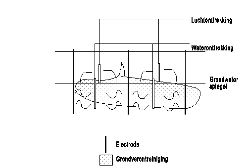 - Elektromigratie enerzijds komt tot stand door een potentiaalverschil tussen anodes en kathodes waardoor een negatief geladen deeltje migreert richting anode en een positief deeltje richting kathode. Elektroheating anderzijds is het z.g. Coulomb-effect dat een gelijk- of wisselstroom in een geleider teweeg brengt: een opwarming waarbij het gegenereerde warmtevermogen gelijk is aan de elektrische weerstand maal het kwadraat van de gerealiseerde stroomsterkte. Door de verhoogde temperatuur, ook en vooral in minder waterdoorlaatbare zones, worden VOCls gemobiliseerd, die dan vervolgens door een extractiesysteem kunnen worden afgevangen.