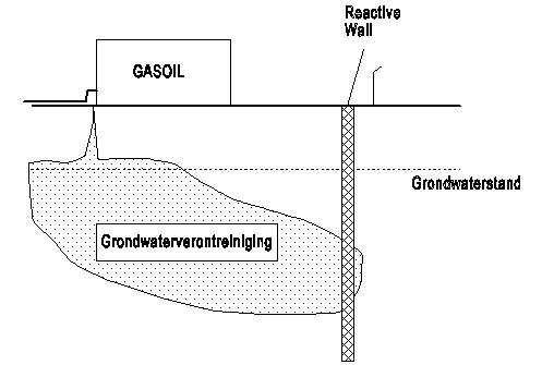 Het tegengaan van verspreiding van verontreinigingen via het grondwater kan worden bewerkstelligd door het aanleggen van een in-situ scherm (reactief scherm). Het scherm wordt loodrecht op de stromingsrichting van het grondwater in de pluim van de grondwaterverontreinigingen aangelegd. Om de grondwaterstroming naar een opening in het scherm te richten kan een 'funnel en gate' systeem worden aangelegd, bestaande uit een waterremmende of waterkerende schermwand (de funnel), die het water naar een opening (gate) in de wand leidt. In de opening kan een reactor of reactieve zone aangebracht worden. In het in-situ scherm of de in-situ reactor worden verontreinigingen vervluchtigd, afgebroken of vastgelegd
