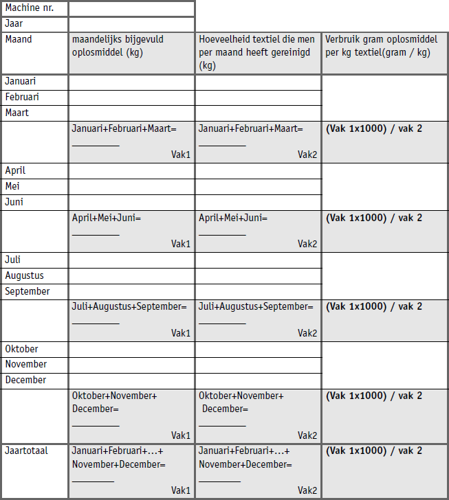 Confederatie van de Textielreiniging, Gids voor de Oplosmiddelenboekhouding voor droogkuisbedrijven met een oplosmiddelenverbruik kleiner dan 1 ton oplosmiddel per jaar.